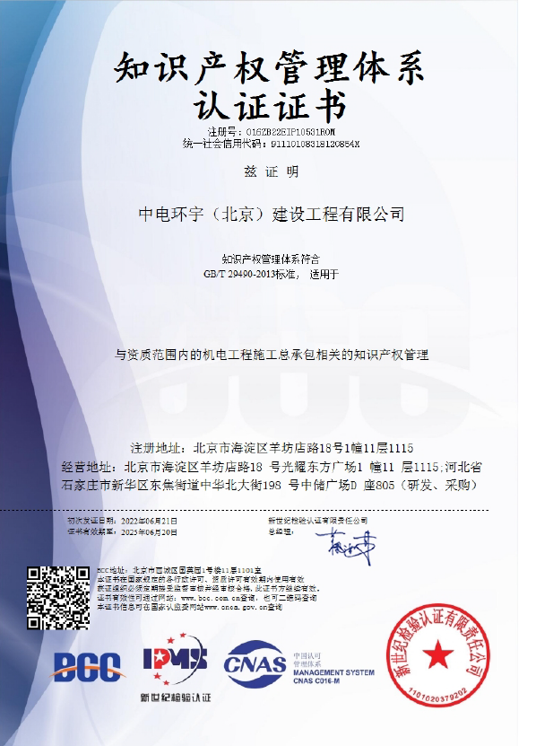知识产权管理体系认证证书